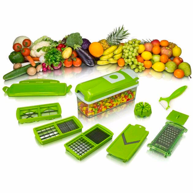 🧅✨ Picador multifuncional 11 en 1 — tu aliado perfecto en la cocina. Este práctico utensilio te permite cortar, picar, rallar y rebanar frutas y verduras con facilidad y precisión. Ideal para uso diario, su diseño compacto y materiales resistentes garantizan comodidad, eficiencia y durabilidad en cada preparación.